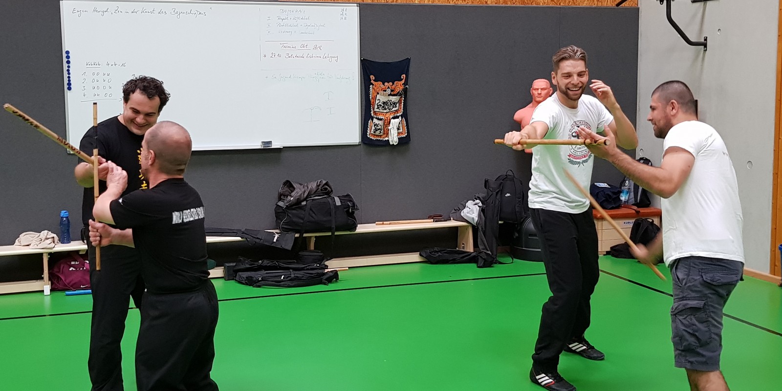 Schön war’s! Meister Martin Sillitoe vom Bulldog Chapter London war zu Besuch in Heidelberg. Wir hatten ihn eingeladen mit uns zusammen im Kempokan ein Balintawak Eskrima Seminar abzuhalten. Martin und Thomas unterrichteten abwechselnd verschiedene Themen des Nickelstick Balintawak wie Multiple Counter (Bodyslash), Drillformen, Dumog (Combat Judo), Left Hand Template, Semi Hitting, Entwaffnungen und Konter. Hier einige Eindrücke.